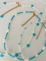 Finished with a stainless-steel lobster clasp and findings for lasting durability, this versatile set can be worn together for a bold, beach-inspired statement or separately for a touch of effortless seaside elegance.