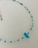 The Sea Glass and Sand choker necklace embodies the essence of coastal beauty with its soft tones and natural textures. Available in two stunning styles—teal with copper accents or lime with silver details—this piece evokes the shimmer of sea glass and the warmth of sunlit shores.