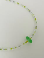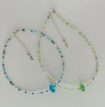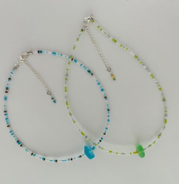 Featuring a smooth sea glass pendant bead paired with clear white glass beads, each necklace is finished with a stainless-steel lobster clasp and findings for lasting strength and shine. A perfect blend of elegance and beachside charm, this choker adds a touch of ocean-inspired serenity to any look.