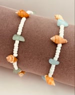 The Seashell Symphony bracelet in green, captures the refreshing spirit of the shoreline with its mix of white glass beads, natural Green Aventurine stone chips, and delicate seashells. The combination evokes the peaceful hues of sea glass and ocean waves, bringing a sense of harmony and renewal. Crafted on a strong elastic cord for a secure and flexible fit, this bracelet is both stylish and enduring—perfect for adding a natural, coastal charm to any outfit.
