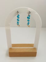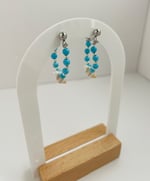 These earrings are made from stainless steel findings and beads, turquoise beads, and seashells. They come in both gold and silver. Earrings are made to order, so please allow 3-4 days for processing.
