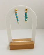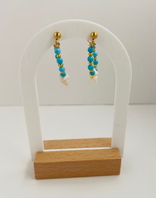 The Turquoise Fusion beaded earrings blend coastal elegance with modern design, capturing the essence of sunlit shores and ocean waves. Available in gold and silver, each pair is crafted from durable stainless steel and adorned with vibrant turquoise beads, polished stainless-steel accents, and natural seashells that evoke a serene, beachside charm.
